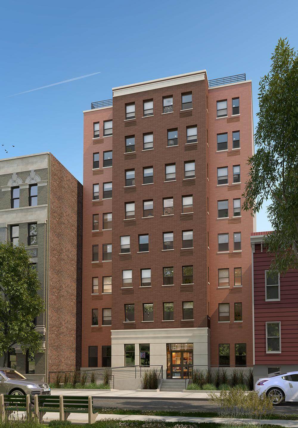 Located at 1420 Crotona Park East, the eight-story, 36,400 square foot building includes 60 studio apartments, 36 of which are for formerly homeless individuals with chronic conditions, and 24 of which are reserved for seniors currently on the NYCHA wait list. The residence includes a community room, a landscaped courtyard and garden, on-site laundry facilities, and 24-hour professionally staffed security.